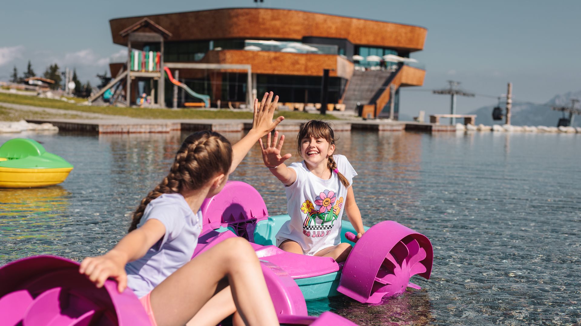 Auf dem Erlebnisberg Spieljoch in Fügen vergisst die ganze Familie die Zeit. Fernab der digitalen Alltagswelt wird gemeinsam gespielt, geklettert, der Boden unter den Füßen verloren und rollend Speed aufgenommen.